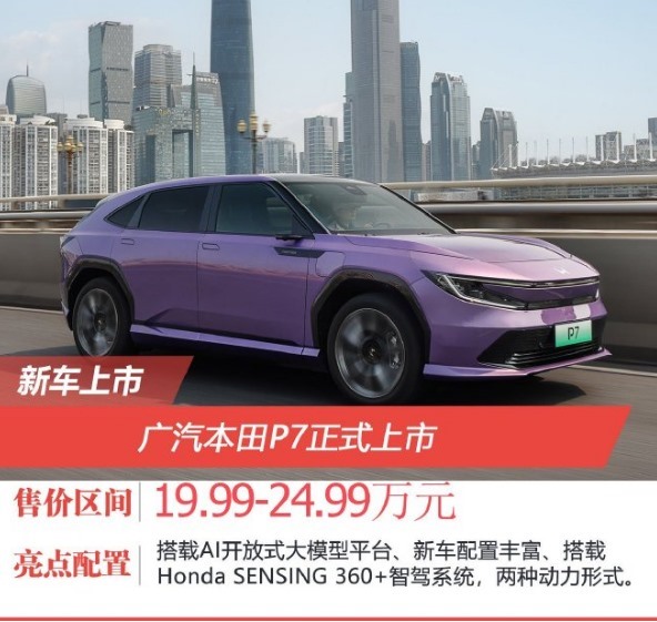 今日,广汽本田全新中型 suv——p7 正式上市,三款车型售价区间为 19.99-24.99 万元。作为新能源赛道的新晋选手,它将直面乐道 l60、极氪 7x 等热门车型的挑战。