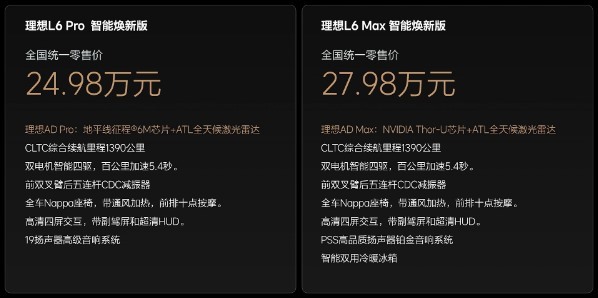 今晚,理想汽车重磅推出 l 系列智能焕新版,l6、l7、l8、l9 全系焕新登场!理想 l6 智能焕新版售价 24.98-27.98 万元,l7 售价 30.18-35.98 万元,l8 售价 32.18-37.98 万元,l9 售价 40.98-43.98 万元。此次升级聚焦智能科技与驾乘体验,亮点满满,让我们一探究竟!