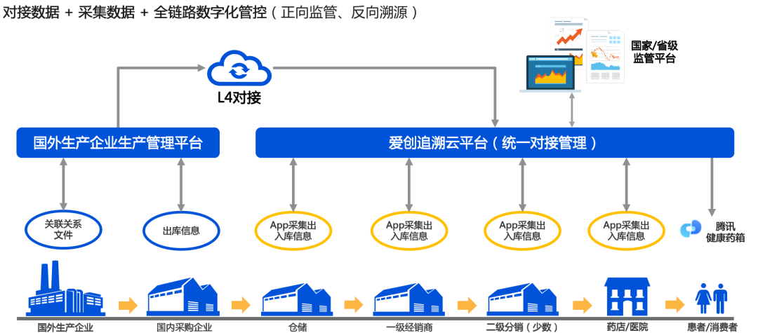 爱创科技以“一物一码”及互联网云为基础,一站式凯发官方首页的解决方案重构数字化体系,打通供应链、连接终端、触达消费者,对接国家监管/协同平台,满足国内外最新法规要求的全程追溯,防伪验真、合规验证,产品全生命周期精确追踪溯源,打通医药流通环节,对接医保系统,兼容gs1和电子监管码两套标准。具有全球法规合规性、行业高合规性、高拓展性、高兼容性、高便捷性等优势。