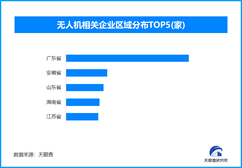 从区域分布来看,广东省以超过7600余家无人机相关企业数量位居首位,占全国企业总数的21.4%。排在其后的是安徽省和山东省,分别为超过2500余家和2300余家。