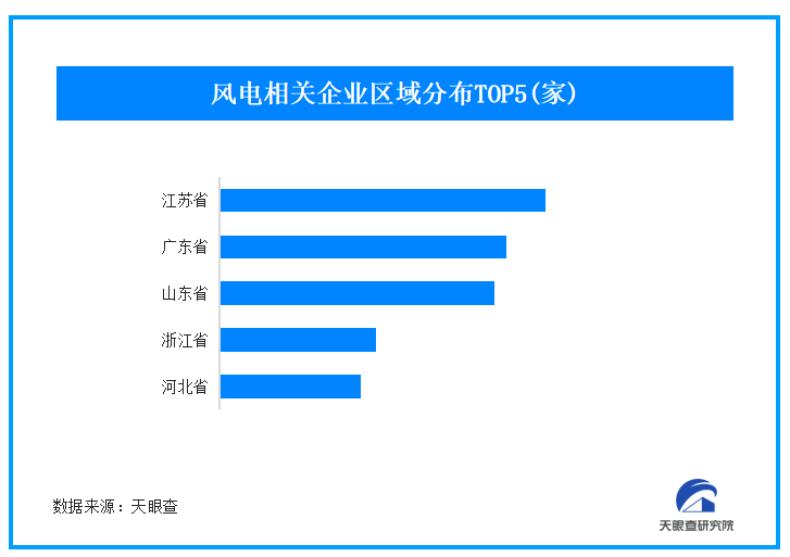 天眼查专业版数据显示,截至目前,我国现存风电相关的企业有10.4万余家。从地域分布上看,江苏省、广东省和山东省风电相关企业数量位居前列,分别拥有1.1万余家、1万余家、1万余家;从成立时间来看,超一半的相关企业成立于1-5年内,成立于1年内的相关企业占比22.28%。