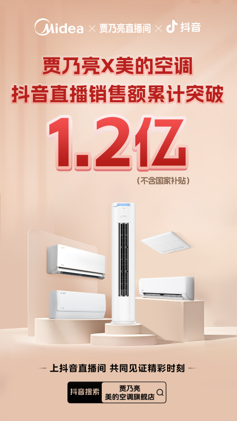 4月26日,贾乃亮直播间迎来家电国货大品牌美的空调,在夏日将至之际开启美的空调直播专场。4月27日,贾乃亮做客美的空调旗舰店抖音直播间,与美的空调线上业务部长贾虎一起延续热度。作为家电行业的领军品牌,美的空调此次携手贾乃亮,不仅凭借其强大的产品力与惊喜好价点燃消费者热情,更以两场直播成交额超过1.2亿元(不含国家补贴)的亮眼战绩,引爆这场夏日清凉狂欢。
