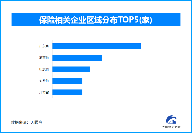 从区域分布来看,广东省、湖南省、山东省保险相关企业数量位居前列,广东省以相关企业超12.9万家的数量排在首位,占全国企业总数的16.5%。排在其后的湖南省和山东省分别拥有7.3万余家和5.4万余家相关企业数量。