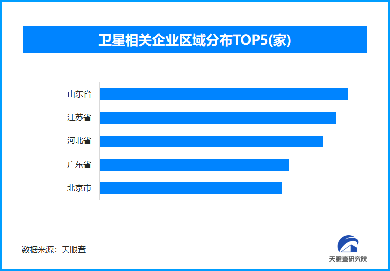 天眼查专业版数据显示,截至目前我国现存在业、存续状态的卫星相关企业超64.4万家。从区域分布来看,山东省、江苏省、河北省卫星相关企业数量位居前列,分别为超5.7万余家、5.4万余家和5.1万余家。排在其后的是广东省和北京市。
