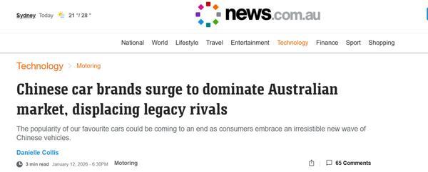 ,据news报道,最新销售数据显示,2025年12月澳大利亚电动化车型销量达35058辆,首次在单月销量上超越同期34559辆的燃油车销量,这一里程碑式节点被业内视为澳大利亚汽车市场电动化转型的潜在拐点。若该趋势持续,2026年有望成为混动、插混及纯电车型全年销量全面超越传统燃油车的关键一年。